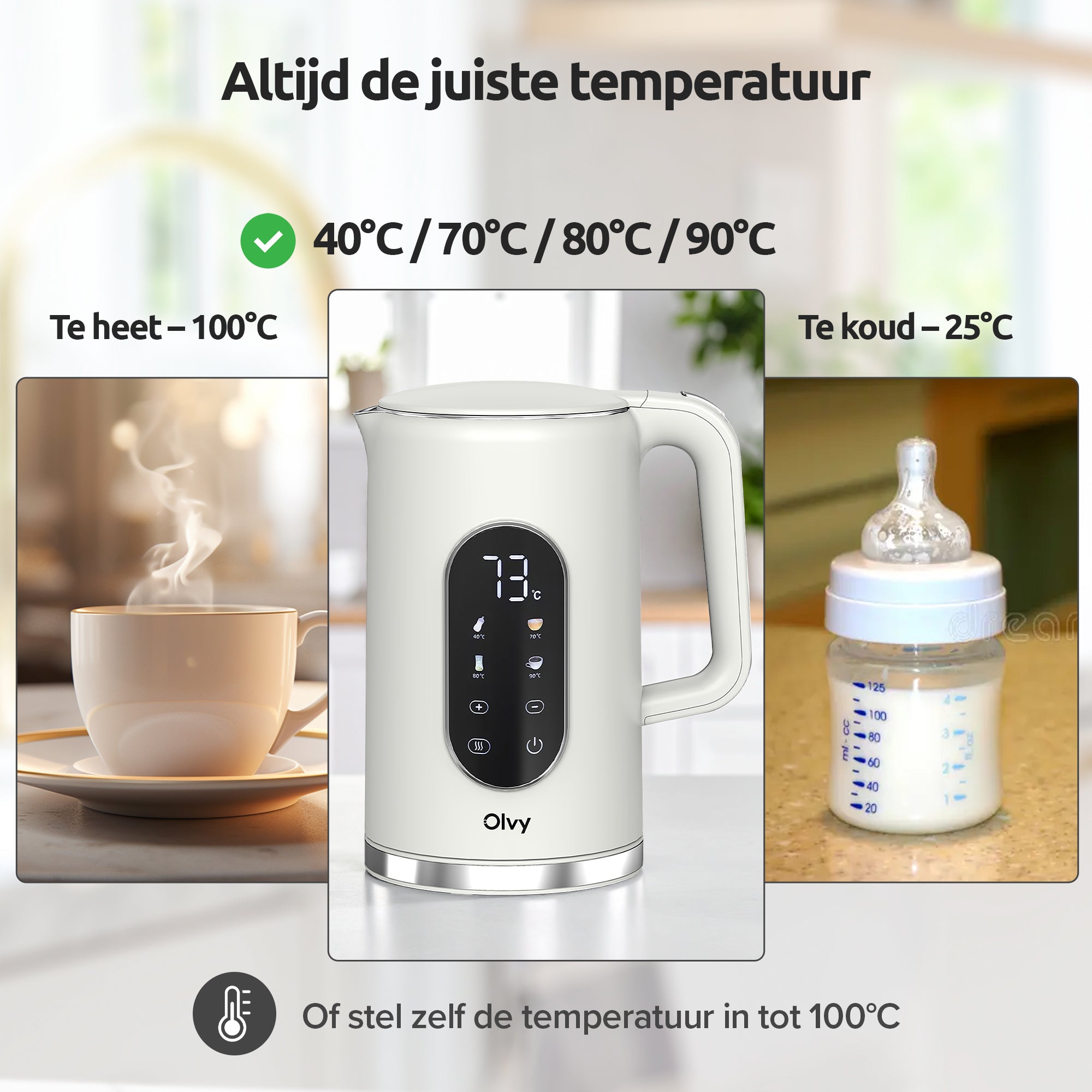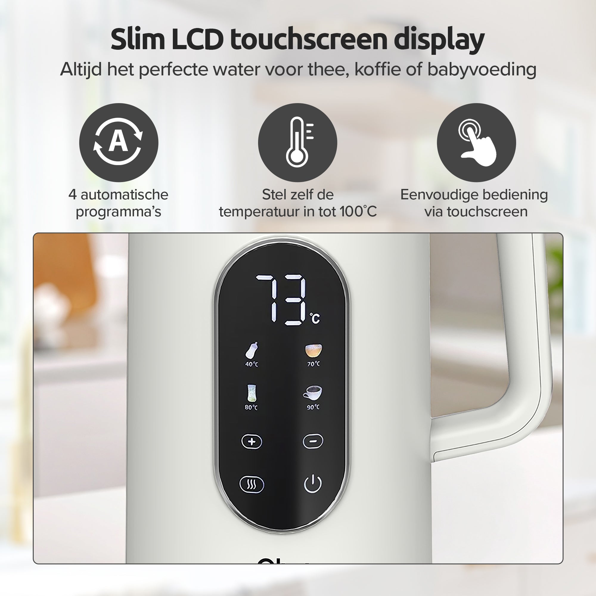• Slim LCD-display: stel zelf de temperatuur in tot 100°C